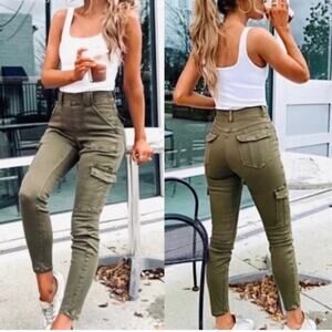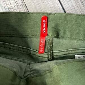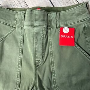 Spanx cargo pants, olive green utility pants, Spanx stretch twill, high rise shaping pants, NWT Spanx, slimming cargo pants, women’s olive trousers.