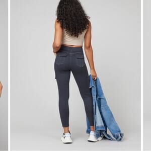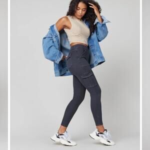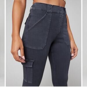 Spanx Stretch Twill Ankle Cargo Pants Washed Black Medium TALL