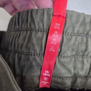 Spanx Stretch Twill Cargo Stretch Jogger Washed Green Women's Size XL Style# 20319R two front pockets and two back pockets with ankle zip and tummy compression control, in great pre-owned condition! Please see photos for approximate measurements.