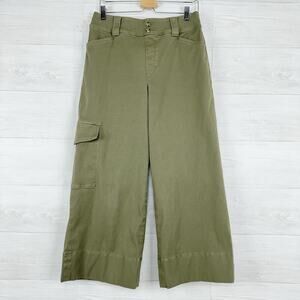 Spanx Stretch Twill Cropped Trouser Cargo Pant Size Large Tuscan Olive Wide Leg