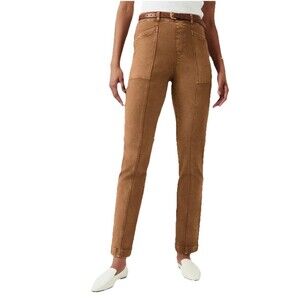 Spanx Stretch Twill Straight Leg Brown Acorn Casual Workwear Womens Medium pull on pants
