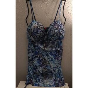 Spanx Swim Suit Plus Shaped Blue Snake One Piece Underwire Sz 14 D/DD NWT $198
