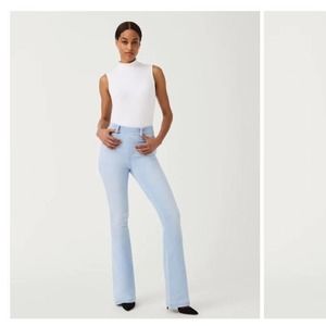 Spanx Sz MP but more like a SP or XS Petite Flare Pull On Jeans Light Wash