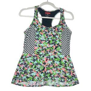 Spanx Tank Peplum Active Top Style Petal Power Thin Stripe Gym Athletic Size M