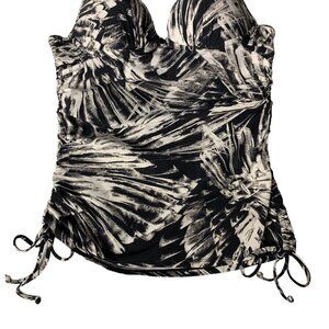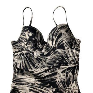 Spanx Tankini Top Small Padded Black White Swimwear Beach Vacation Chic