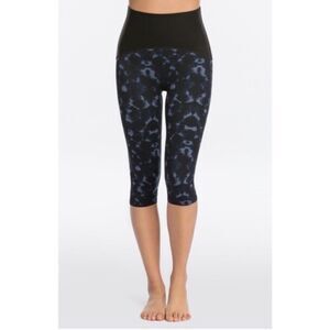 Spanx The Active Compression Knee Pant Blue Camo Midnight Sky Crop Leggings L