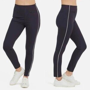 Spanx The Perfect Pant Women's Small Ankle Piped Skinny Navy Blue Tuxedo Stripe
