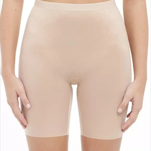 Spanx Thinstincts 2.0 High-Waisted Mid-Thigh Girl Shorts Sz XL Shapewear Beige