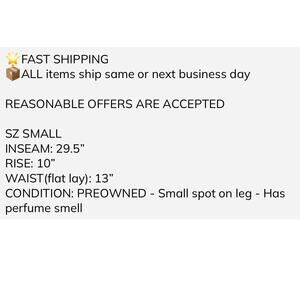 Condition: Preowned- Small spot on leg. Has perfume smell