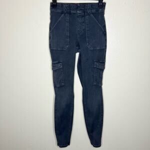 Spanx Twill Tapered Cargo Pants Small Pull On Gray Ankle Stretch Shaping Utility