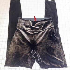Spanx Velvet Leggings Black Gold Metallic Shine Shimmer High Rise Stretch 20188R size XS