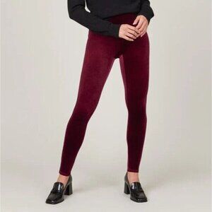 Spanx Velvet Leggings In Rich Burgundy Shapewear High Waisted High Rise Skinny Fit Soft Contoured Power Waistband Elastic Waist Lightweight Stretch Women's