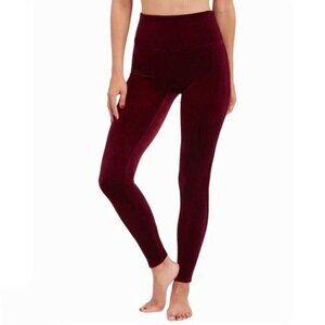 Spanx Velvet Leggings Rich Burgundy Women's Size L High Rise Shapewear Holidays