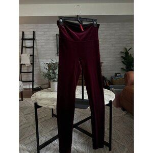 Spanx Velvet Velour Burgundy High Waisted Leggings Womens Size L