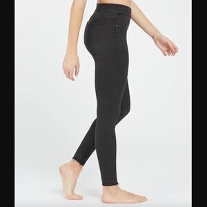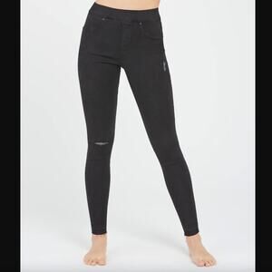Spanx Vintage Distressed Ankle Skinny Jeans Vintage Black Stretch Denim Pants. Raw hem. Regular length. Pull on style, no zipper. Style number 20213R. 77% cotton, 12% lyocell, 8% polyester, 3% elastane.