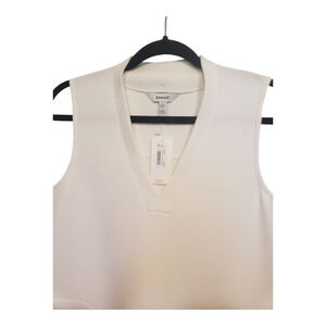 V neck, pockets, airessentials, spanx, flattering, athleisure, lounge casual, lounging, walking, workout, comfortable, soft, flattering, gorpcore, neutral, classic, sleeveless,
