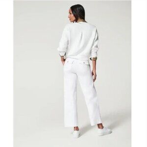 Spanx White Stretch Twill Cropped Wide Leg Pant Large