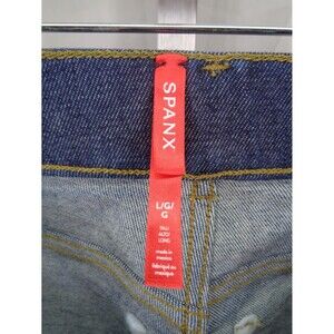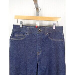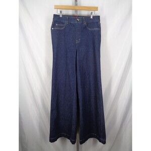 Spanx Wide Leg Jeans Size Large Tall (measurements below) Raw Indigo Pull-on style Faux front pockets Faux fly & button Patch back pockets Style 20547T Material & care tags removed Approximate measurements laid flat: Waist unstretched: 15-1/4" Rise: 12-1/4" Hips: 19-1/4" Inseam: 34" Leg opening: 13-1/2"