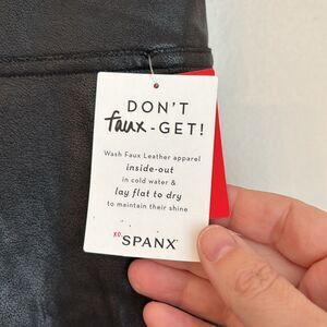 Spanx Women Black Faux Leather Leggings stretch size large new with tags!
