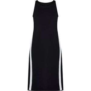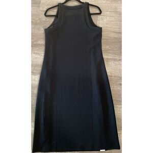 Spanx Women Midi Dress Aire Side Stripe Crew Neck Sleeveless Button Very Black