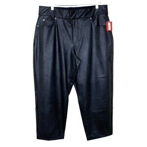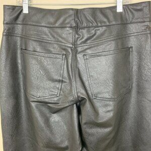 Spanx Womens 1X Petite Pants NEW Black Faux Leather Slim Straight Leg Stretch