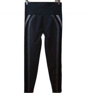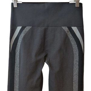 Spanx Womens Black Gray Look At Me Now Seamless Track Stripes Crop Leggings L