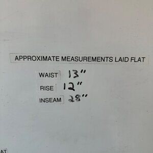 Waist = 13", Rise = 12", Inseam = 28"