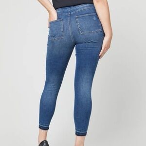 Spanx women’s distressed ankle skinny jeans in medium wash blue. Size small.