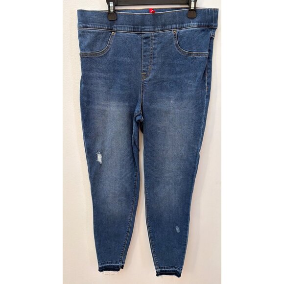 Spanx Womens Distressed Denim Leggings L/G Dark Wash Stretch Fabric Elastic Wais