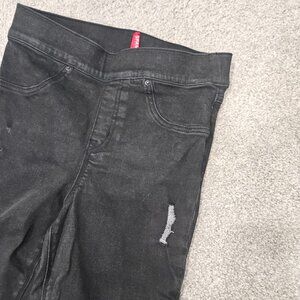 Spanx Women's Distressed Vintage Black Ripped Raw Hem Denim Jeans Jeggings Small