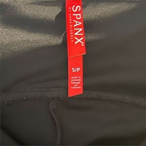 Keywords: Spanx, black jeggings, faux leather, moto detail, shaping technology, women's leggings, casual wear, fall fashion, mid-rise, machine washable, pre-owned, excellent condition, small size, nylon, elastane.