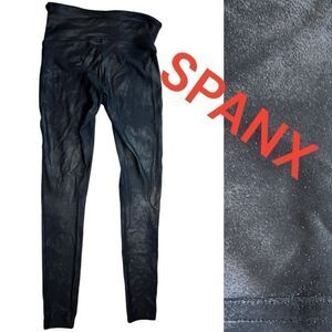 Spanx Women's Faux Leather Pull-On Flat Front Ankle Leggings Black Size Medium