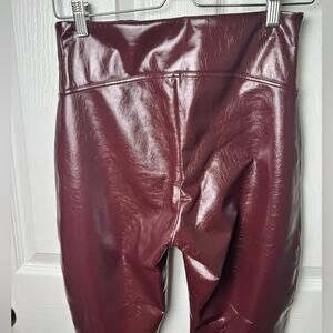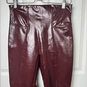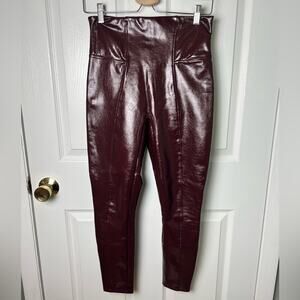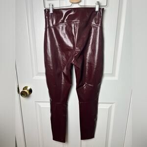 Spanx Womens Faux Patent Leather High Waist Burgundy Leggings Ruby M