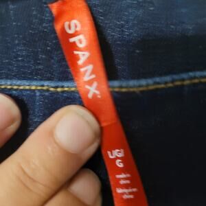 Spanx Womens High Rise Flare Jeans Size L Blue Pull On Stretch Slimming