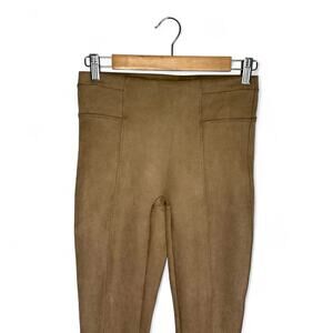 Spanx Women's High Waist Faux Suede Size Leggings S Taupe Camel Brown Microfiber