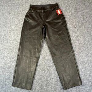 Spanx Womens Leather Like Slim Straight Pant Crop Size Small Petite Black NWT