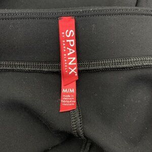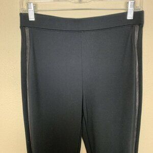 Spanx Womens Leggings M Black Faux Leather Side Stripe Ponte Track Jogger Pants