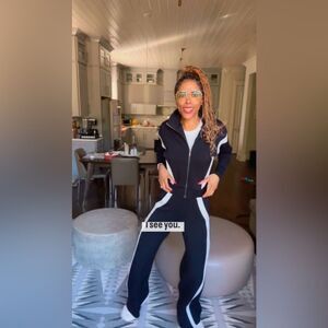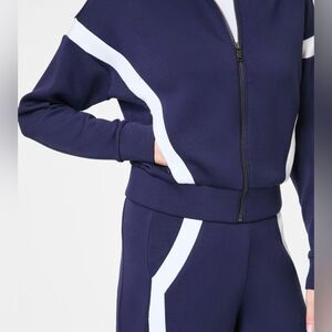 Spanx Women’s Size Large Tall AirEssentials Navy Blue Striped White Pants