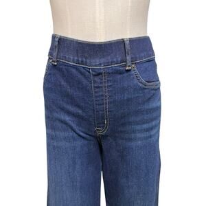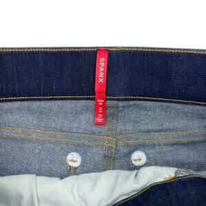 Spanx Womens Step Hem Kick Flare Raw Hem Jeans in Midnight Sz M Tall