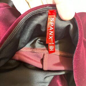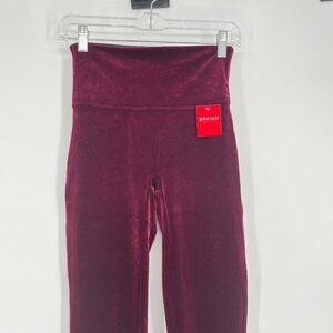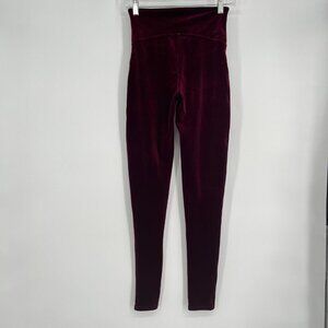 Spanx Womens Velour Leggings High Waist Burgundy Size M