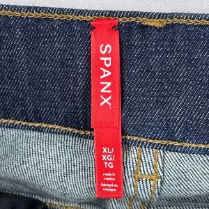 Spanx XL Cropped Kick Flare Jeans Raw Indigo Dark Blue Denim Pull On Stretch