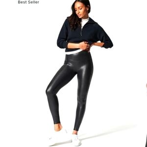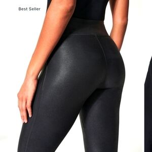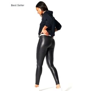 Faux Leather that flatters. This best-selling style features sleek, smoothing faux leather fabric that shapes and lifts and our contoured Power Waistband for core compression.