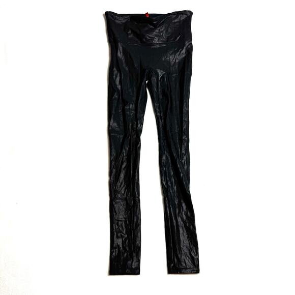 The Spanx faux leather leggings in size medium are a versatile and stylish choice for women looking to add a touch of sophistication to their wardrobe. Made of faux leather in a sleek black color, these ankle-length leggings feature a comfortable medium fabric wash and are designed to provide a flattering fit. With the reputable Spanx brand, these leggings are not only fashionable but also high quality and durable, making them a timeless addition to any wardrobe for both casual and dressed-up occasions.