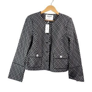 Spanx ponte black white plaid blazer jacket preppy money office sz M