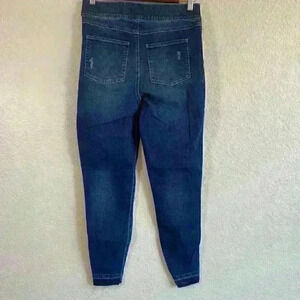 Spanx pull-on High Rise Raw Hem light distressed Blue Jean Leggings Women Size Medium