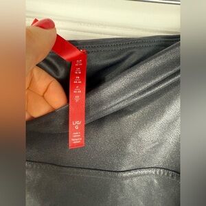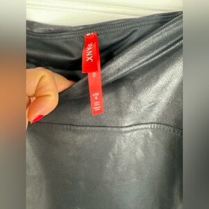 Spanx women’s faux leather look black stretch leggings. Size Large.