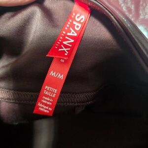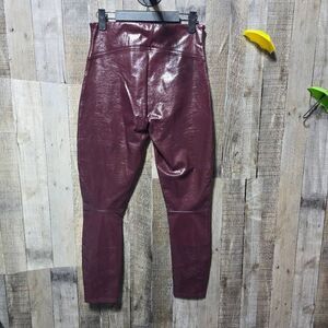 Spanx Patent Faux Leather Leggings Womens M Petite Pants Ruby Burgundy Shine