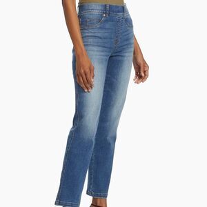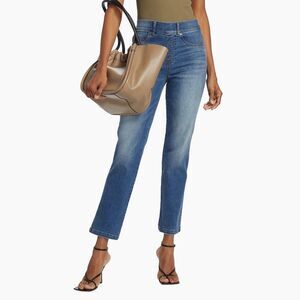 Designed with comfortable stretch denim, high-rise coverage, and hidden tummy shaping, Spanx pull-on straight-leg jeans are a perfect everyday option.