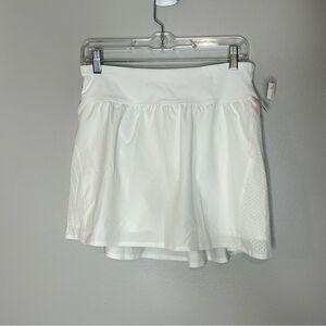 Size L. Long story skort…this style is ready for the tennis court and more. Powered by our fan-favorite Booty Boost short that is inconspicuously designed under the skort, this style offers sculpting, an added booty lift and a held in feel. Plus the short wicks and stays put while you’re on the move. We didn’t forget about the necessities—we designed this skort with pockets (woohoo!) that secure your keys, credit card, and phone.