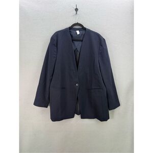 Spanx Womens Navy Striped One Button Perfect Collarless Ponte Blazer Size 2X